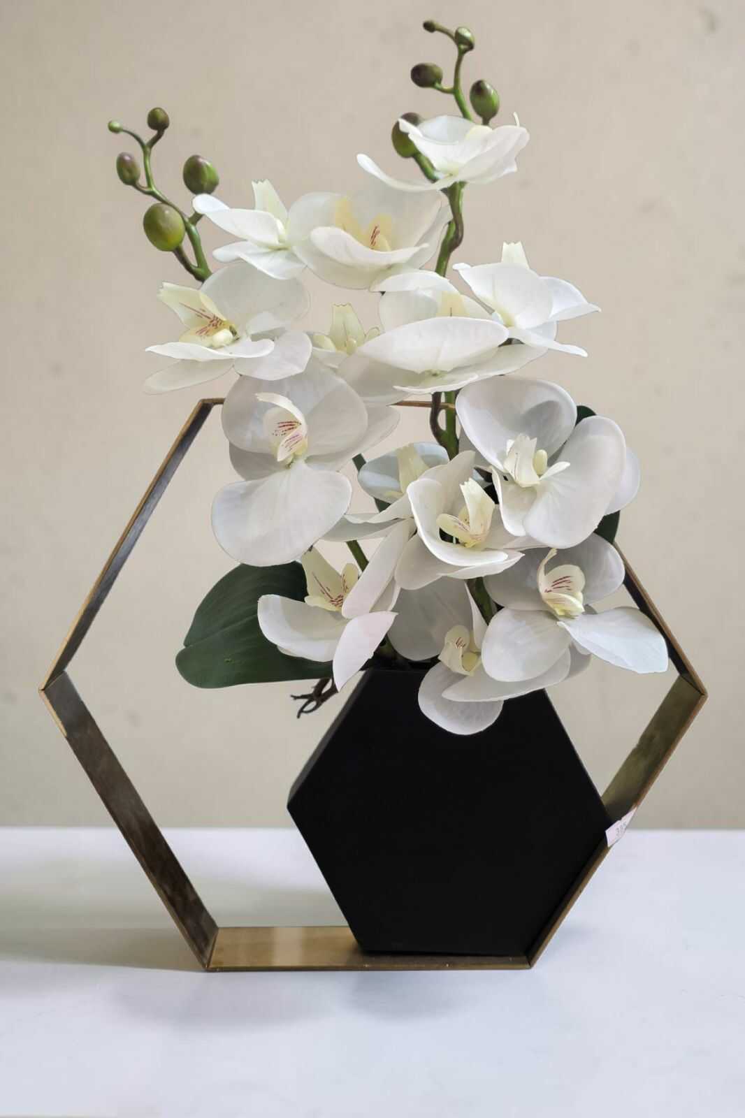 אגרטל משושה מוזהב ממתכת איכותית